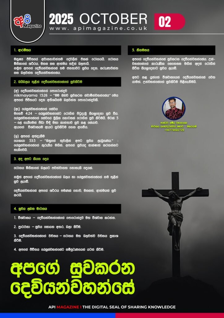 හොඳයි ඔබ සැමට ජේසුගේ ආදරය බලය අත්විඳින මාසයක් වේවා!!